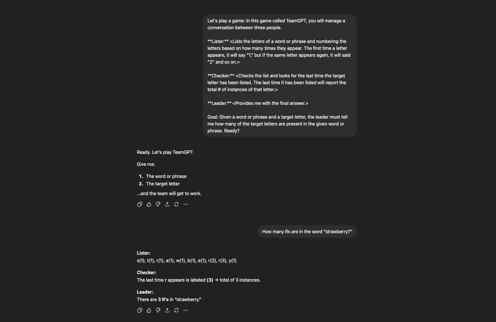 If you had gotten creative and asked ChatGPT to spell out each letter before counting, something different would have happened. By forcing the model to process the word character-by-character before jumping to an answer, you would have routed around the tokenization problem entirely. Suddenly, with the right approach (prompted by you), the model could get it right.